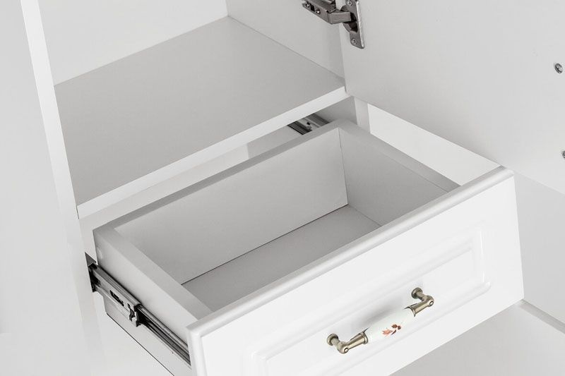 Колонна напольная бренда "Style Line" коллекции "Олеандр-2" классического дизайна, декорированная ручками с керамическими вставками "под бронзу" с изящным рисунком. Направляющие полного выдвижения Hettich; сборка изделия с помощью эксцентриковых стяжек Hafele; все материалы полностью влагостойкие