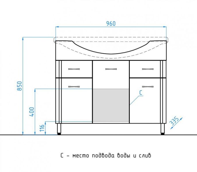 Тумба напольная бренда "Style Line" Эко Стандарт 26 с 2 ящиками. Фурнитура - хром, эксклюзивный декор "Луино" - ламинация внутренней стороны изделия. Направляющие полного выдвижения Hettich; сборка изделия с помощью эксцентриковых стяжек Hafele; все материалы полностью влагостойкие. Данная тумба предусматривает открытую подводку воды