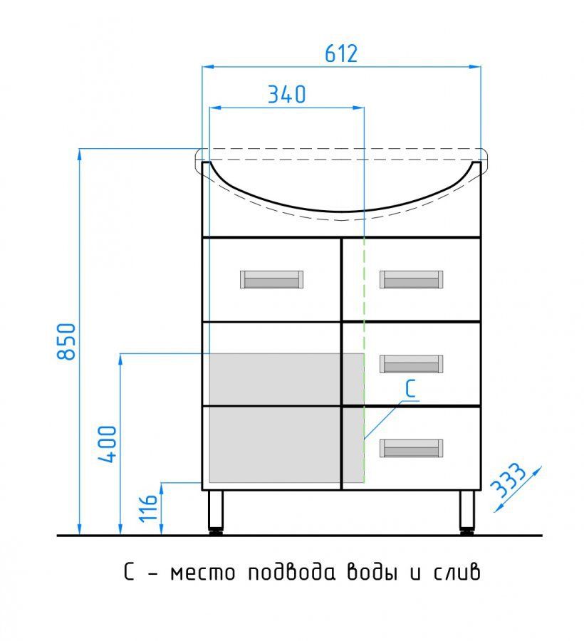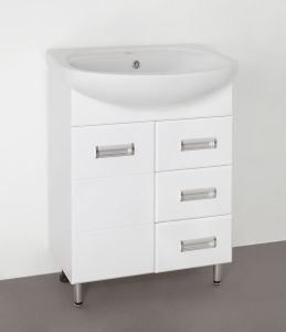 Тумба напольная "Ирис" с прямоугольными фасадами современного дизайна, декорированная врезными ручками хром/матовый хром. Направляющие полного выдвижения Hettich, обеспечивают плавность и бесшумность хода, высокую надежность и прочность. Данная тумба предусматривает открытую подводку воды