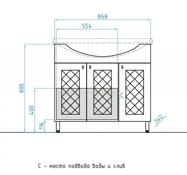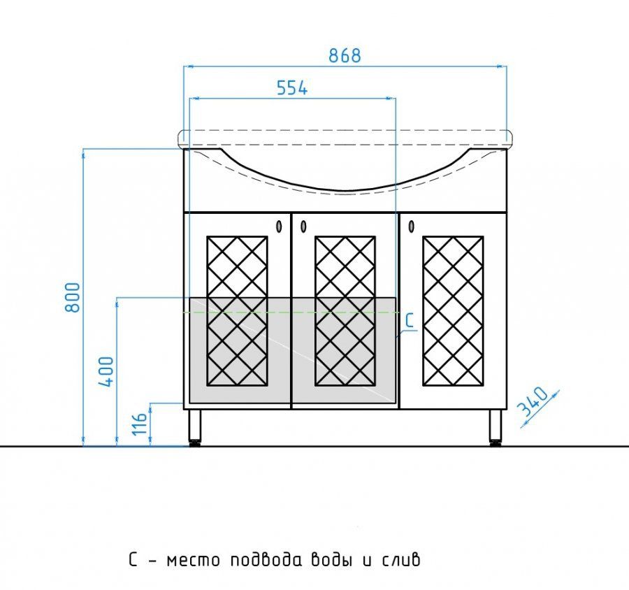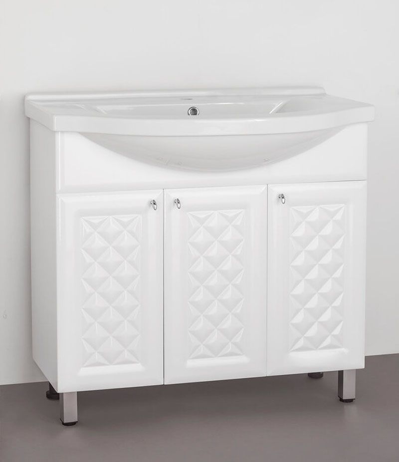 Тумба напольная бренда "Style Line" коллекции "Канна" с современной 3D фрезеровкой фасада, которая придает мебели индивидуальность и особый колорит. Фурнитура - хром, петли на дверцах с механизмом плавного закрывания. Направляющие полного выдвижения Hettich обеспечивают плавность и бесшумность хода, высокую надежность и прочность. Данная тумба предусматривает открытую подводку воды
