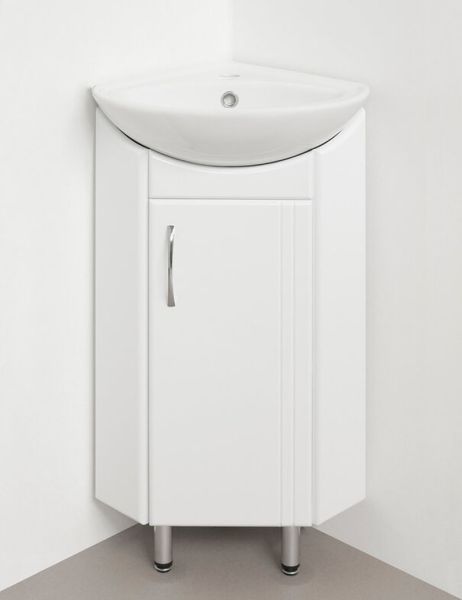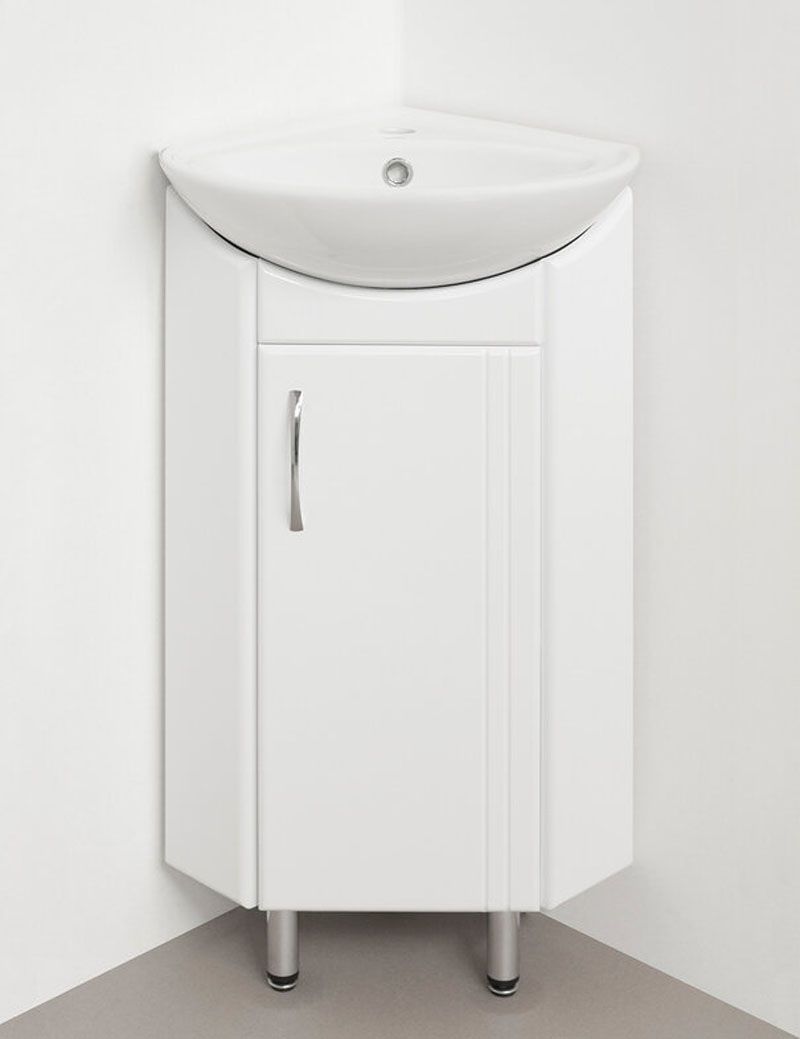 Тумба угловая бренда "Style Line" Эко Стандарт Веер. Фурнитура - хром, эксклюзивный декор "Луино" - ламинация внутренней стороны изделия. Направляющие полного выдвижения Hettich; сборка изделия с помощью эксцентриковых стяжек Hafele; все материалы полностью влагостойкие. Компактные размеры и лаконичный дизайн позволяют легко встроить данную тумбу в интерьеры самых малогабаритных помещений. Данная тумба предусматривает открытую подводку воды