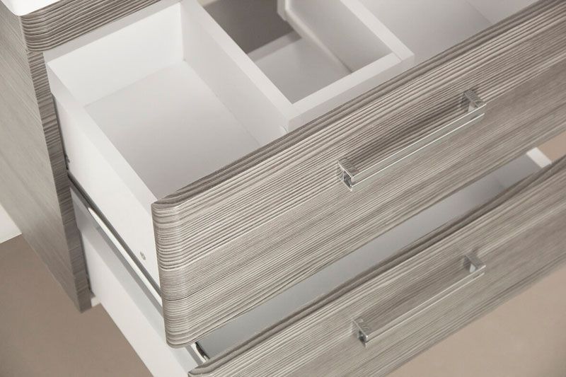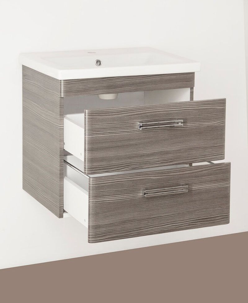 Тумба подвесная бренда "Style Line" коллекции "Лотос" с двумя ящиками в цвете шелк зебрано. Фурнитура - хром. Доводчики "Hettich" обеспечивают плавность и бесшумность хода, высокую надежность и прочность. Боковины изделий в пленке в цвет фасадов.
