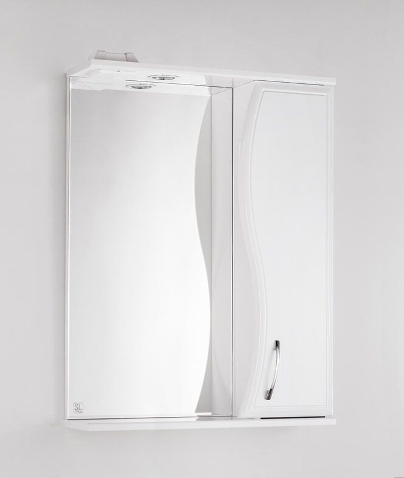 Зеркало-шкаф бренда "Style Line" коллекции "Панда 60/С Волна" с высокоточной обработкой кромки фацетом и подсветкой. Фурнитура - хром. Кромка зеркала "Панда 60/С Волна" зашлифована, что защищает от порезов. Лазерная гравировка фирменного логотипа. Край полочек имеет трапецевидную еврокромку. Эксклюзивный декор "Луино" - ламинация внутренней стороны изделия