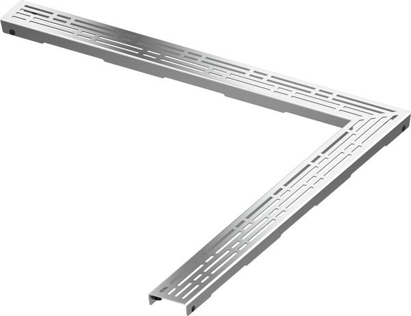 Декоративная решетка для душевого канала TECEdrainline, угловое исполнение с углом 90°, из нержавеющей стали (глянец) для установки в корпус канала, несущая способность в соответствии с классом нагрузки K3 — испытательная нагрузка 300 кг, из двух частей. Доступность решеток с поверхностью «сатин» подтверждается по запросу!