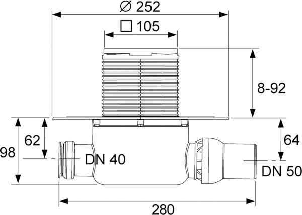 Трап дренажный TECEdrainpoint S 120 горизонтальный, стандартный DN 50, испытан согласно DIN EN 1253. Комплект поставки: • Корпус трапа DN 50 горизонтальный, низкий, пластиковый (PP) • С универсальным фланцем для установки композитных прокладок или зажимного фланцевого соединения • Со встроенным шаровым соединением • С боковым входом DN 40 с заглушкой • Со съемным стаканом гидрозатвора • Уровень гидрозатвора = 50 мм согласно DIN EN 1253 • Верхняя часть трапа с рамкой решетки (АБС-пластик) и уплотнительный кольцом • Декоративная решетка TECEdrainpoint S из тянутой нержавеющей стали, материал 1.4301 (304), размеры 100 x 100 мм, полированная поверхность, класс нагрузки K3 (нагрузка до 300 кг) Производительность (согласно DIN EN 1253) при уровне воды над решеткой 10/20 мм: • при минимальной высоте монтажа решетки: 0,52/0,89 л/с • при максимальной высоте монтажа решетки: 0,64/1,35 л/с В комплект входит защитная монтажная заглушка, пленка для монтажа и инструкции по сборке. Дополнительно приобретается в зависимости от типа уплотнения: • Гидроизоляционная манжета Seal System для создания испытанного, сертифицированного соединения с композитной гидроизоляцией • Монтажный комплект с прижимным фланцем и гидроизоляционная манжета, обрезаемая по месту