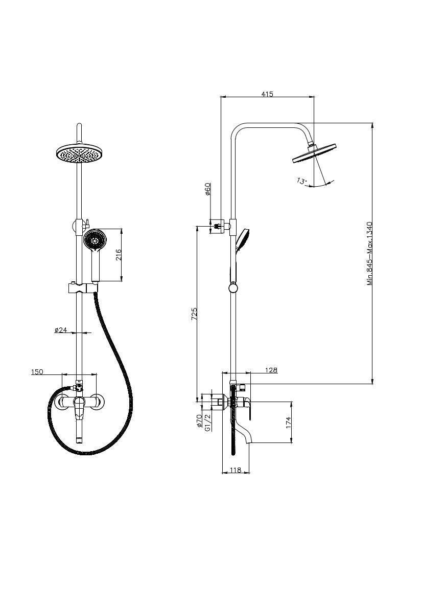 Тип:душевая система со смесителем