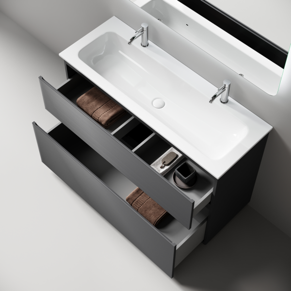 • Тумба напольная с двумя выдвижными ящиками с доводчиками скрытого монтажа