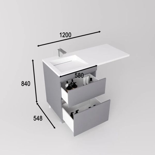 Тумба напольная Style Line Даллас Леон 120 Люкс Plus СС-00002450 под раковину для стиральной машины серый