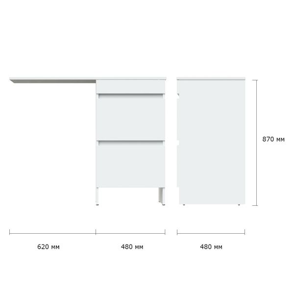 Напольная тумба под стиральную машину. Два ящика. Фасад - МДФ в цвете белый глянец. Корпус - ЛДСП в цвете белый глянец. В комплекте ножки подпятники 4 шт (регулировка по высоте до 10 мм). Поставляется только в комплекте с раковинами OP-110RAL или OP-110RAR, раковина приобретается дополнительно.