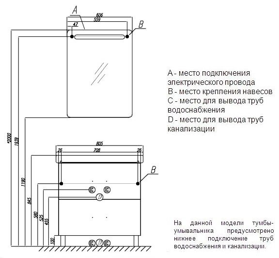 • Дополнительно организовано нижнее подключение труб водоснабжения и канализации