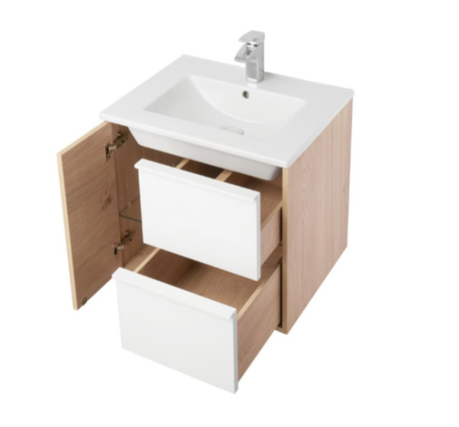 Тумба под раковину Акватон Бостон 60см белый/дуб эврика 1A252501BN010