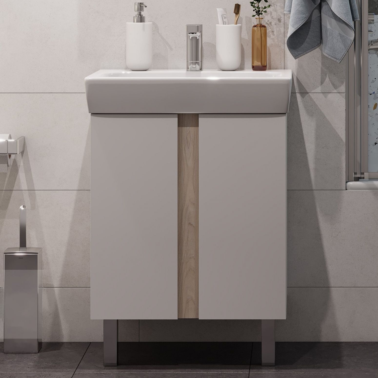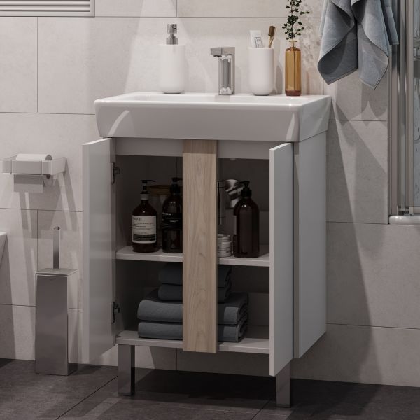 Тумба для комплекта Акватон Кантри 60 белый/дуб верона не только отличное украшение для ванной комнаты, но и великолепное функциональное решение любого санузла.Компания Акватон использует при производстве высококачественные водоотталкивающие материалы (ДСП), соответствующие всем необходимым требованиям безопасности. Серия Кантри отличается превосходным дизайном с соблюдением всех значительных элементов современного стиля. Основным цветом, в котором выполнена тумба под раковину Акватон Кантри является белый, безупречно впишется в любой дизайн проект. Тумба под раковину предусматривает удобную и вместительную систему хранения, состоящую из дверей, полочек. Качественные доводчики позволяют обеспечить мягкое и тихое закрывание. Ключевые габариты изделия: ширина 56.7 см, глубина 41.6 см, высота 59.5 см.Страной бренда Акватон является Россия, все товары производятся с выполнением соответствующих стандартов качества, что позволяет быть полностью уверенными в долговечности и надежности. Тумба для комплекта Акватон Кантри 60 белый/дуб верона поможет сделать уютным любой интерьер и создать идеальную ванную комнату.