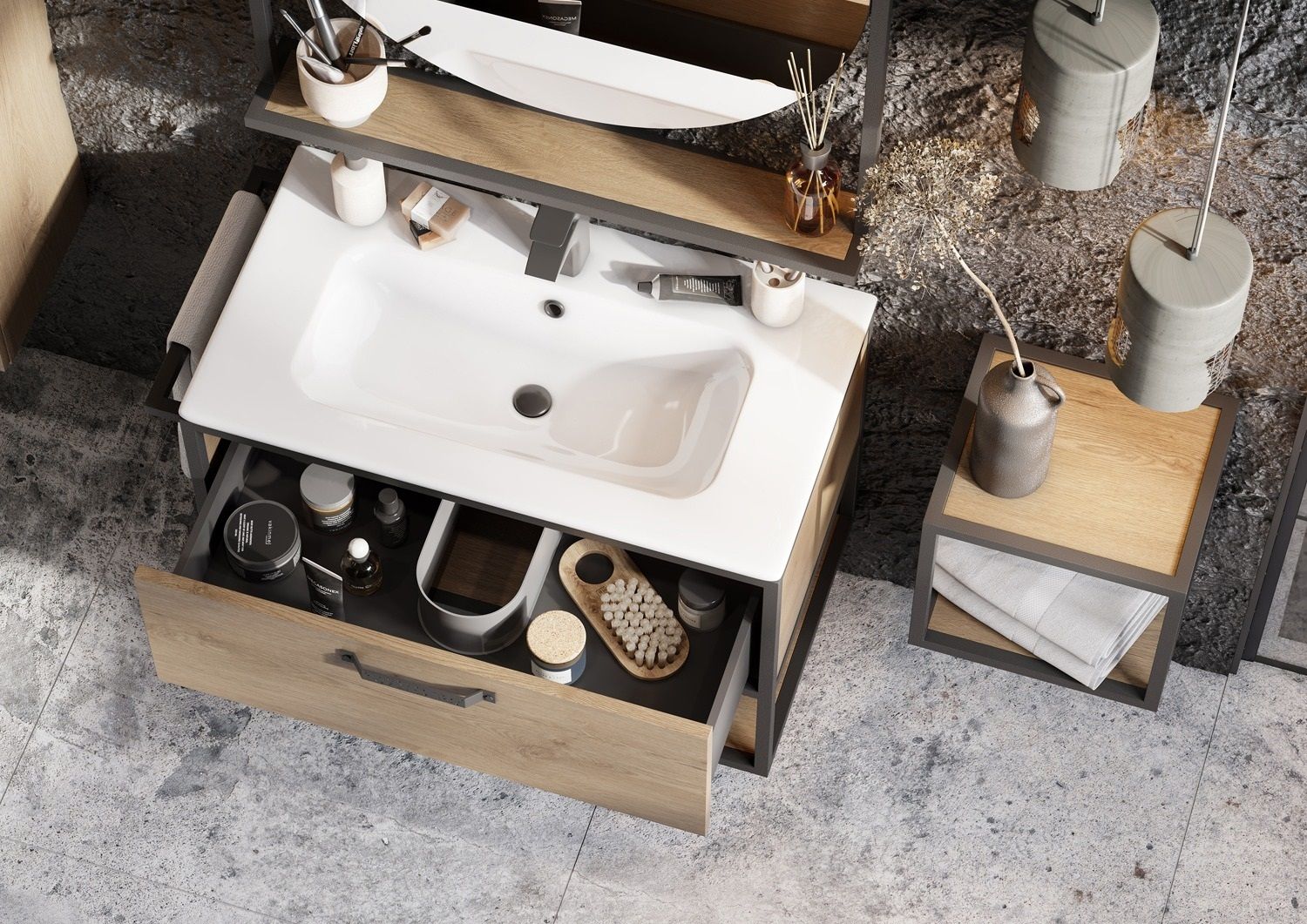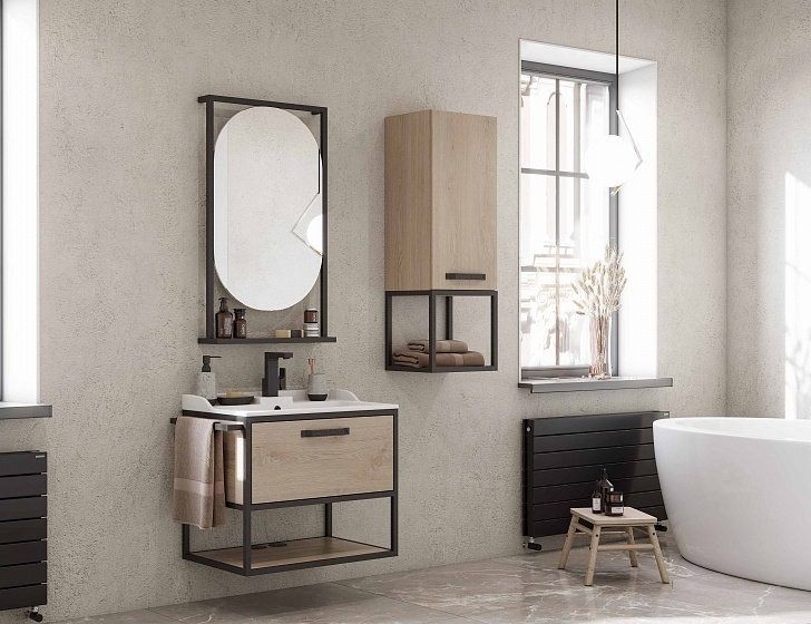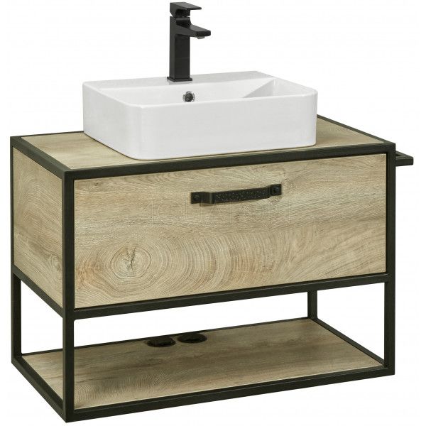 - Тумба Лофт Фабрик 65 в цвете дуб эндгрейн – это сочетание натурального древесного декора и благородства металла