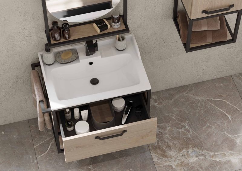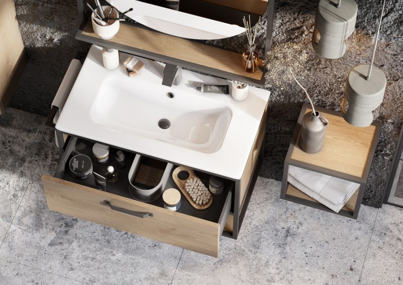 - Удобный вместительный ящик, снабженный направляющими плавного выдвижения и открытая нижняя полка позволят разместить все необходимое