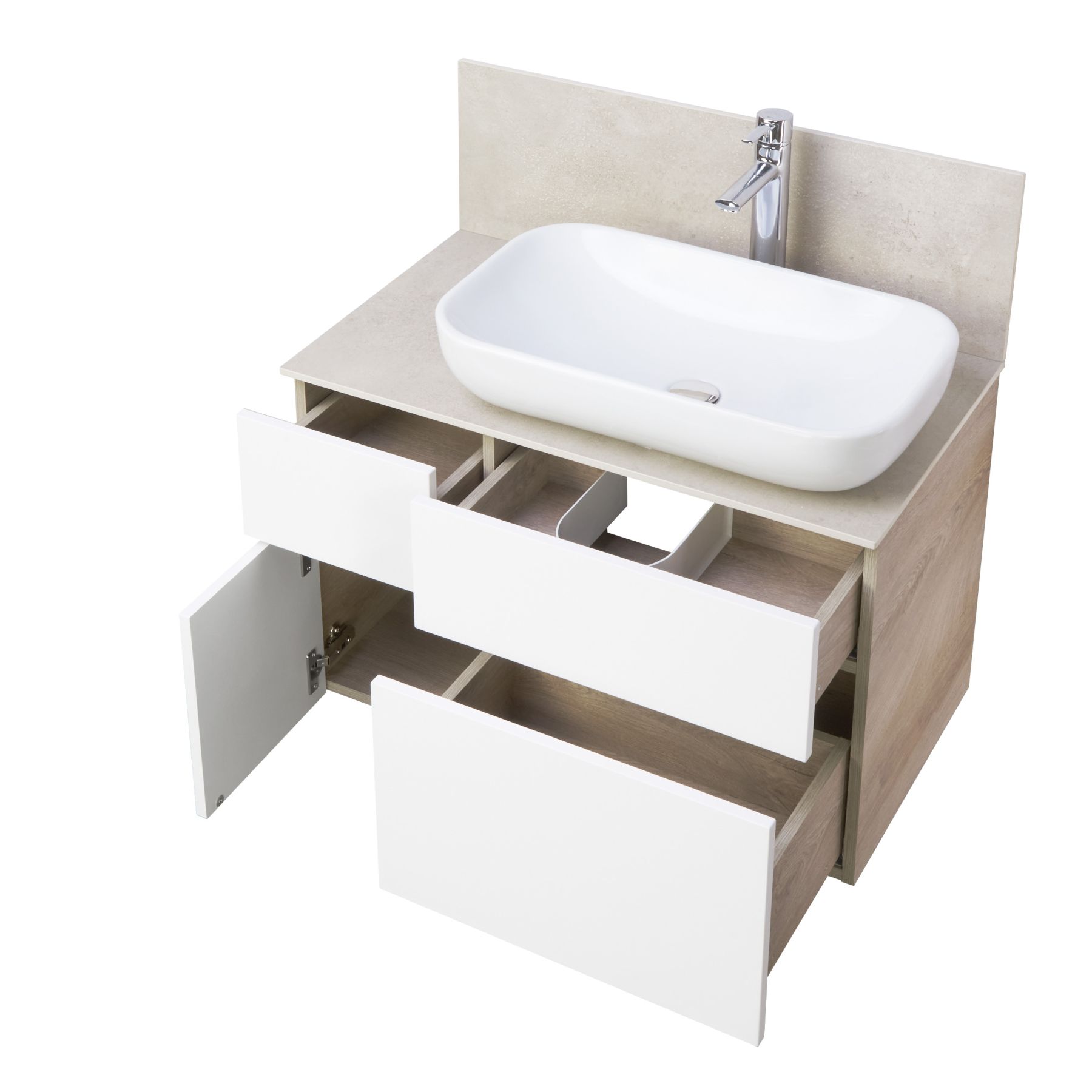 Тумба под раковину Акватон Мишель 80см дуб эндгрейн/белый 1A244501MIX40