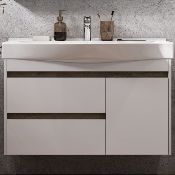 Тумба для комплекта Акватон Нортон 100 прекрасное решение для создания комфортной атмосферы в любой ванной комнате. Подвесной способ установки дает возможность не только визуально увеличить пространство, но и обеспечивает быстрый и удобный доступ для уборки.В производстве используют только качественные влагостойкие материалы (ДСП), в составе которых полностью отсутствуют опасные вещества. Серия Нортон отличается превосходным дизайном с соблюдением всех существенных элементов современного стиля. Основным цветом, в котором выполнена тумба под раковину Акватон Нортон является белый, безупречно впишется в любой дизайн проект. Тумба под раковину предусматривает удобную и вместительную систему хранения, состоящую из дверей, ящиков. Качественные доводчики позволяют обеспечить мягкое и тихое закрывание. Важные габариты изделия: ширина 96.6 см, глубина 35.7 см, высота 55.4 см.Страной бренда Акватон является Россия, все товары производятся с выполнением соответствующих стандартов качества, что позволяет быть полностью уверенными в долговечности и надежности. Тумба для комплекта Акватон Нортон 100 правильный выбор в современном дизайне ванной, придающий уникальность всему помещению, при этом сохраняя функциональность.