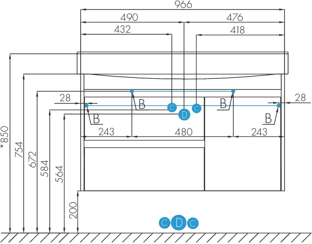 Тумба под раковину Акватон Нортон 100см белый 1A249001NT010