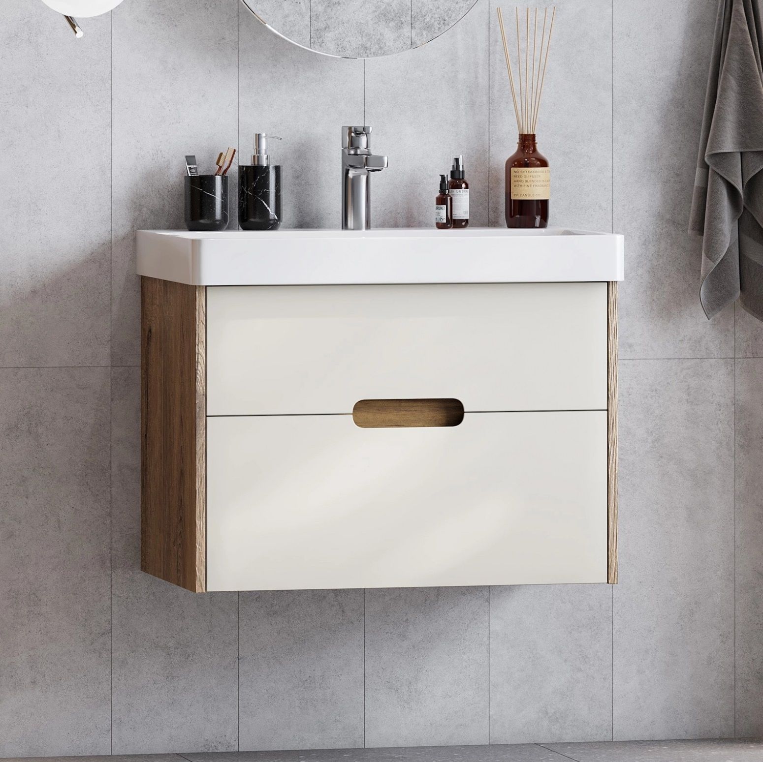 Тумба под раковину Акватон Оливия 70см бежевый/дуб веллингтон 1A254301OLVG0