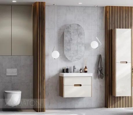 Тумба для комплекта Акватон Оливия 70 бежевый/дуб велл не только не только функциональный предмет интерьера ванной комнаты, но отличное эргономичное дополнение дизайна, как небольшого, так и крупного помещения. Подвесной способ установки дает возможность не только визуально увеличить пространство, но и обеспечивает быстрый и удобный доступ для уборки.Компания Акватон использует при производстве высококачественные водоотталкивающие материалы (ДСП), соответствующие всем необходимым требованиям безопасности. Серия Оливия отличается превосходным дизайном с соблюдением всех актуальных элементов современного стиля. Основным цветом, в котором выполнена тумба под раковину Акватон Оливия является светлое дерево, отлично подходящий большинству дизайнерских решений. Тумба под раковину предусматривает удобную и вместительную систему хранения, состоящую из ящиков. Ключевые габариты изделия: ширина 68.2 см, глубина 42.7 см, высота 48 см.Страной бренда Акватон является Россия, все товары производятся с выполнением соответствующих стандартов качества, что позволяет быть полностью уверенными в долговечности и надежности. Тумба для комплекта Акватон Оливия 70 бежевый/дуб велл поможет сделать уютным любой интерьер и создать идеальную ванную комнату.