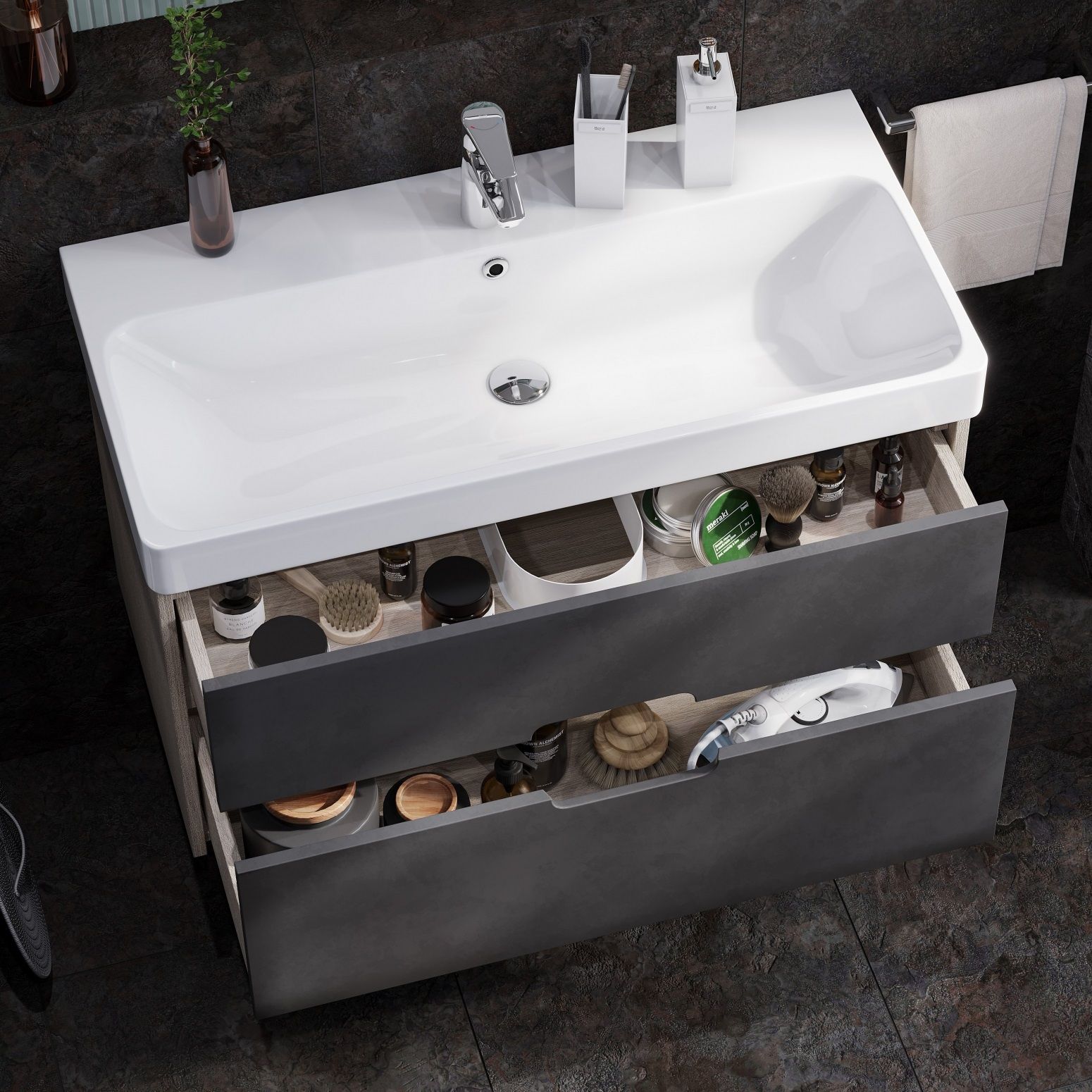 Тумба под раковину Акватон Оливия 90см грей/дуб ойстер 1A254401OLUG0