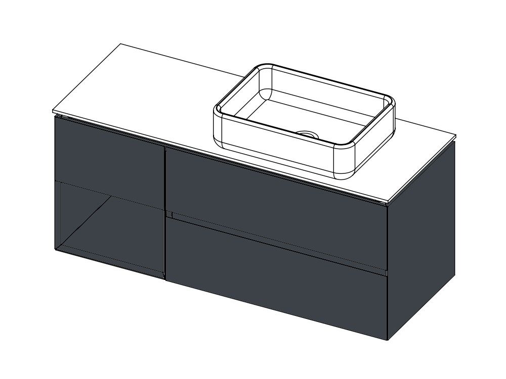 • Выдвижные ящики с металлическими боковыми стенками в цвете серый металлик.