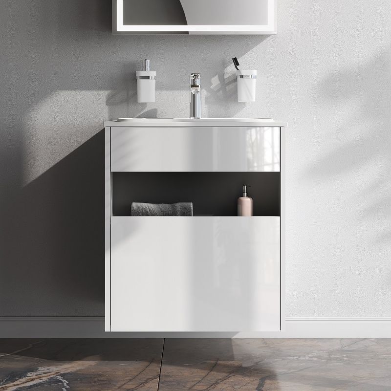 Коллекция мебели Func отличается своей функциональностью, вариативностью и мобильностью. Наши инженеры продумали и учли каждую деталь, чтобы сделать взаимодействие с продуктами максимально простым и комфортным для всех членов семьи. Удобный выдвижной ящик и вместительная открытая ниша позволяют хранить все необходимые средства под рукой. Невероятно мягкое открытие и закрытие благодаря направляющим скрытого монтажа с системой soft close. Универсальный монтаж подвесной и напольный (комплект ножек приобретается отдельно).