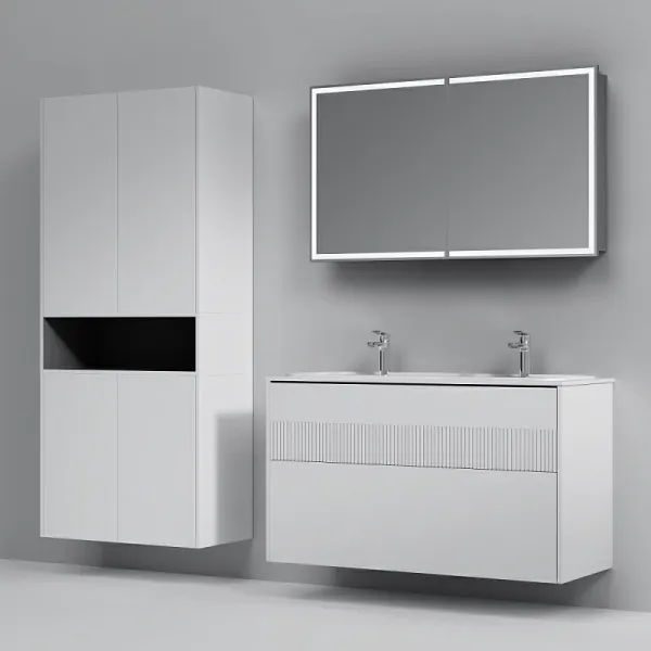 Дополните покупку тумбы уникальной широкой раковиной, интегрированной со столешницей. Раковина позволяет устанавливать два смесителя. Дизайн разработан немецкой студией Design3. Раковина выполнена из литьевого мрамора. Матовая поверхность раковины придает интерьеру ощущение уюта и комфорта. Размер раковины (Ш/Г/В): 1208x492x160 мм. Цвет раковины - белый.