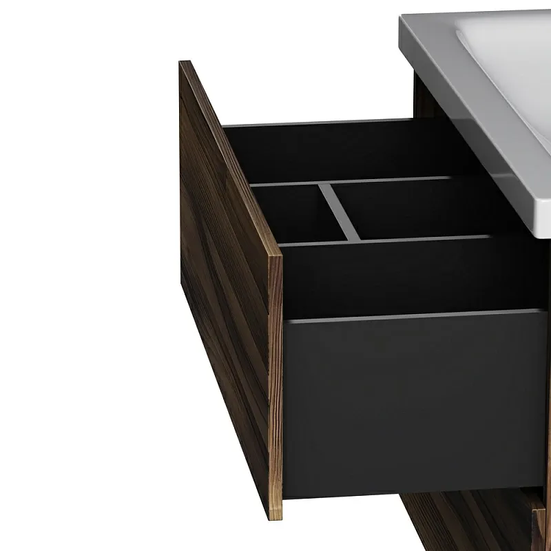 Тумба под раковину Am.Pm Gem M90FHX0752HF подвесная орех 75 смПодвесная тумба бренда AM.PM коллекции Gem идеально подойдет тем, кто предпочитает минимализм в интерьере. Современный европейский дизайн от студии DanelonMeroni (Великобритания/Италия). Фурнитура push-to-open - открытие ящика легким нажатием на фасад. Два ящика с антискользящим покрытием цвета "антрацит" – европейский стандарт. Размер (Ш/Г/В): 750x410x540 мм.