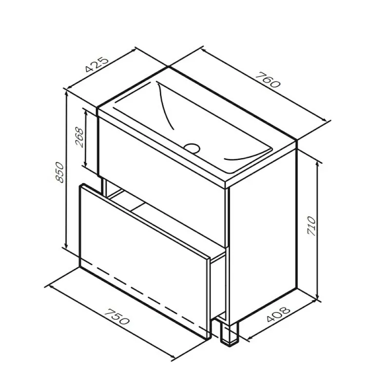 Фурнитура push-to-open - открытие ящика легким нажатием на фасад. Направляющие скрытого монтажа обеспечивают плавное выдвижение ящиков. Ширина базы под раковину - 75 см