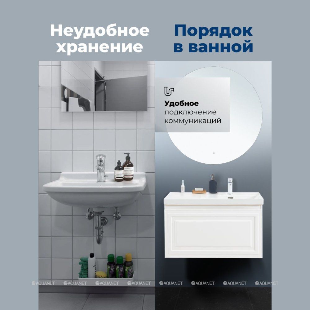 Тумба под раковину Aquanet Агата 90 белый сатин сочетает элегантность неоклассики с практичност... Подробнее