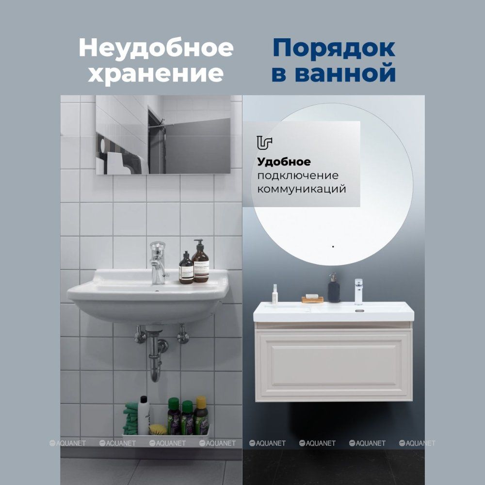 Тумба под раковину Aquanet Агата 100 бежевый сочетает функциональность и современный дизайн. Она подойдет для любых интерьеров. Устойчивость к влаге и прочные материалы делают ее надежным выбором.