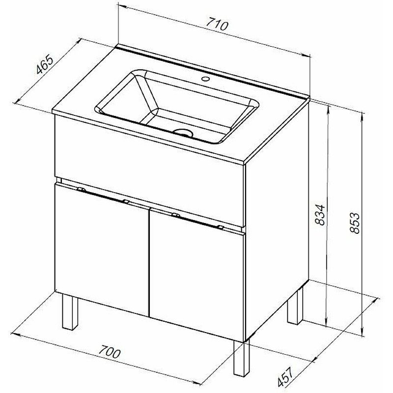 Тумба под раковину в ванную комнату бренда Aquanet выполнена в стиле модерн и входит в нашу коллекцию мебели Алвита New. Представленная коллекция мебели для ванных комнат осчастливила сотни покупателей, так как они приобрели сочетание дизайна, качества и функциональности. Важный момент при выборе тумбы для умывальника / раковины - это материалы. Они должны быть адаптированы к эксплуатации в условиях повышенной влажности. Влагостойкий ЛДСП - материал, из которого выполнен корпус изделия, фасад - из влагостойкого ЛДСП. При монтаже напольной тумбы в первую очередь необходимо учесть ширину, которая равна 70 см. Тумба в цвете серый освежит Вашу ванну и будет отлично сочетатся с сантехникой. Тумба в ванную также обеспечит вам экономию места, так как в ней предусмотрены вместительные ящики, оснащенные механизмом доводчика.