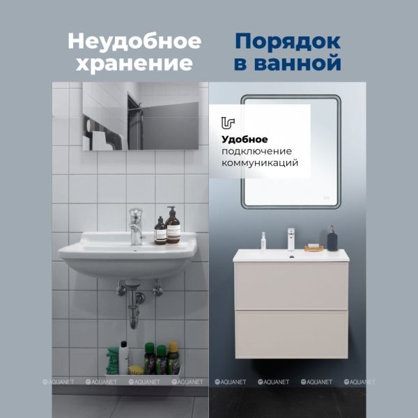 Aquanet Арт 75 бежевый — функциональная и эстетичная мебель, которая сочетает в себе прочность, влагостойкость и современный дизайн.