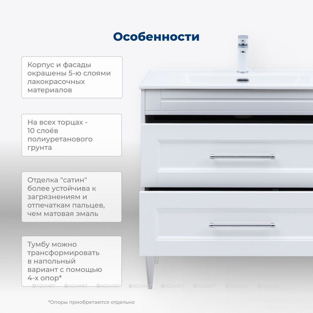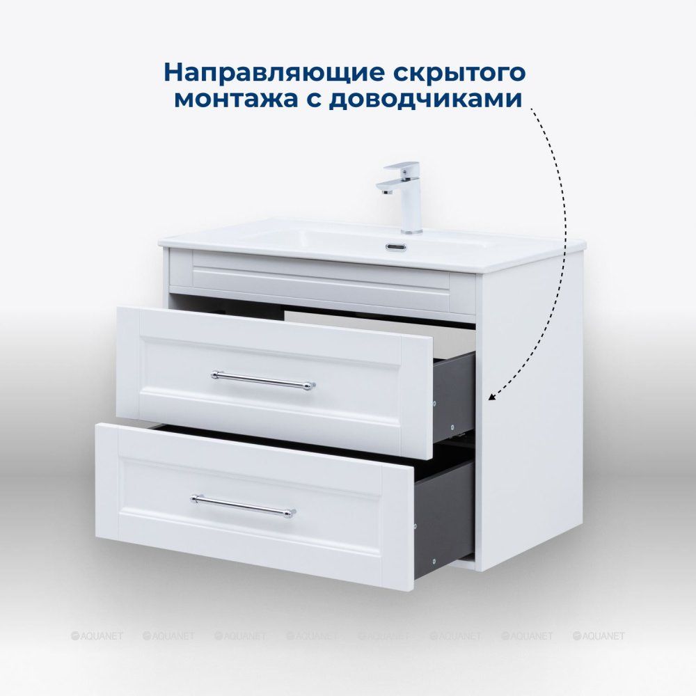 Тумба под раковину Aquanet Бостон new 80 белый сатин Стильная и функциональная тумба под рако... Подробнее