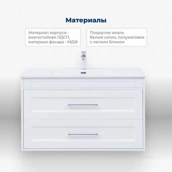 Тумба под раковину Aquanet Бостон New 306369 100 см белый сатин