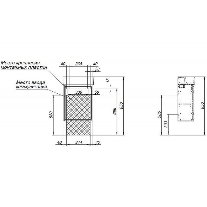 • Монтаж: подвесной, крепление к стене.