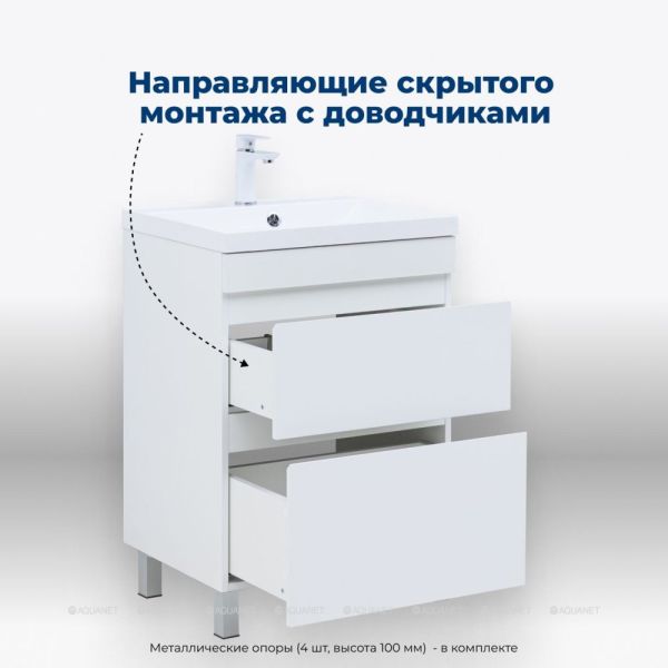 Тумба под раковину Aquanet Нота New 60 белый глянец Элегантное и практичное решение для ванно... Подробнее