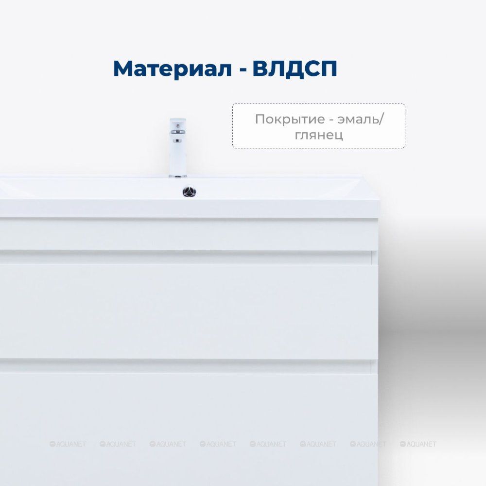 Корпус и фасады изготовлены из влагостойкой ЛДСП с эмалевым покрытием, что обеспечивает устойчивость к влаге и долговечность. Глянцевая поверхность придает тумбе стильный внешний вид, легко вписывающийся в любую обстановку.