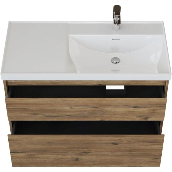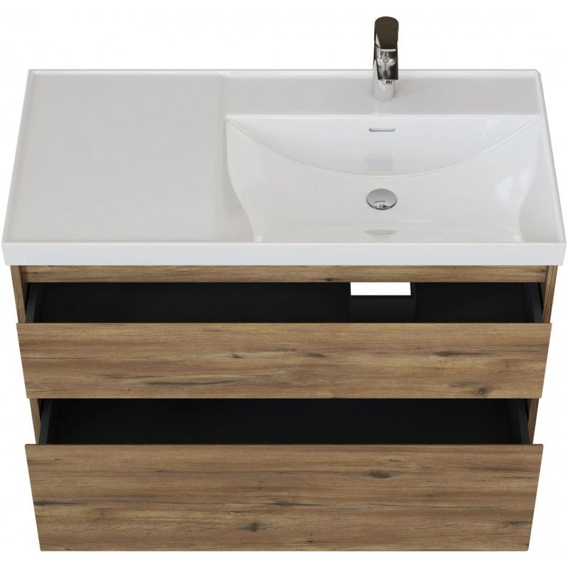 Стильная и практичная тумба для ванной комнаты с продуманной конструкцией. Модель Aquanet Nova Lite 2.0 100 выполнена в цвете дуб рустикальный – матовое покрытие имитирует фактуру натурального дерева и не оставляет отпечатков пальцев.