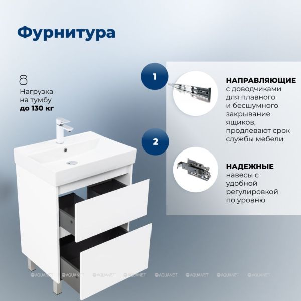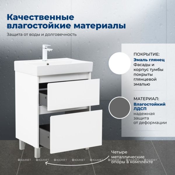 Тумба под раковину Aquanet Nova Lite 2.0 60 напольная, белый глянец