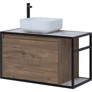 Тумба под раковину Aquanet Nova Lite Loft 261660 90L дуб рустикальный представляет интригующий дизайн в стиле лофт. Разнообразие креативных идей, воплощенных в деталях тумбы, сделали ее востребованной ценителями сдержанного авангарда. Этот важный элемент мебели для ванной подготовлен к использованию в условиях повышенной влажности. Металл, влагостойкий ЛДС - материал, из которого выполнен корпус изделия, фасад – из влагостойкого ЛДСП. Обратите внимание, что двери выдвижные. Система хранения удобная: с ящиками.