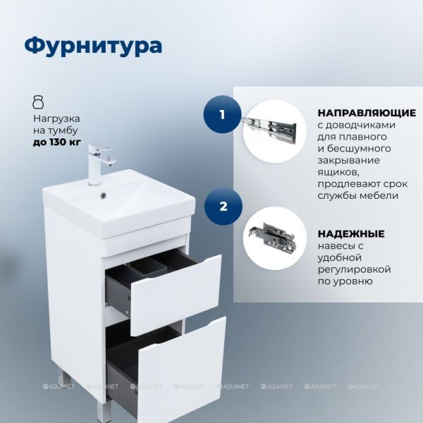 Тумба под раковину Aquanet Слим 40 напольная, белый сатин – компактное и функциональное ре... Подробнее