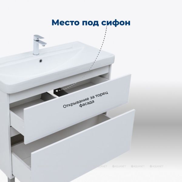 Тумба под раковину Aquanet Вега 100 напольная в отделке "белый глянец" – это воплощение эл... Подробнее