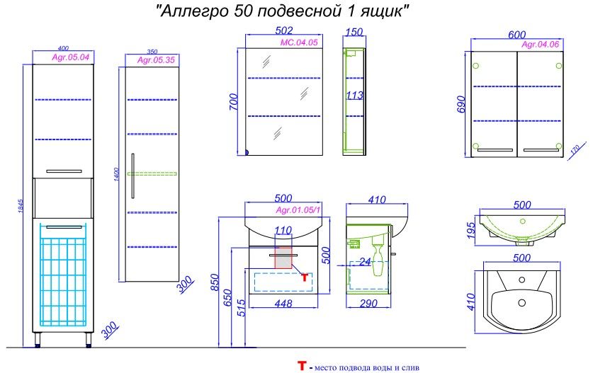Тумба под раковину Aqwella Аллегро 50 Agr.01.05/1 купить
