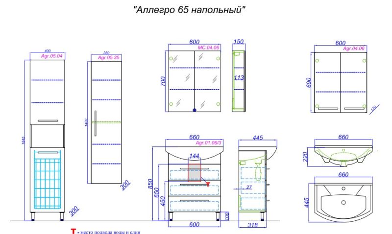 Тумба под раковину Aqwella Аллегро 65 Agr.01.06/3