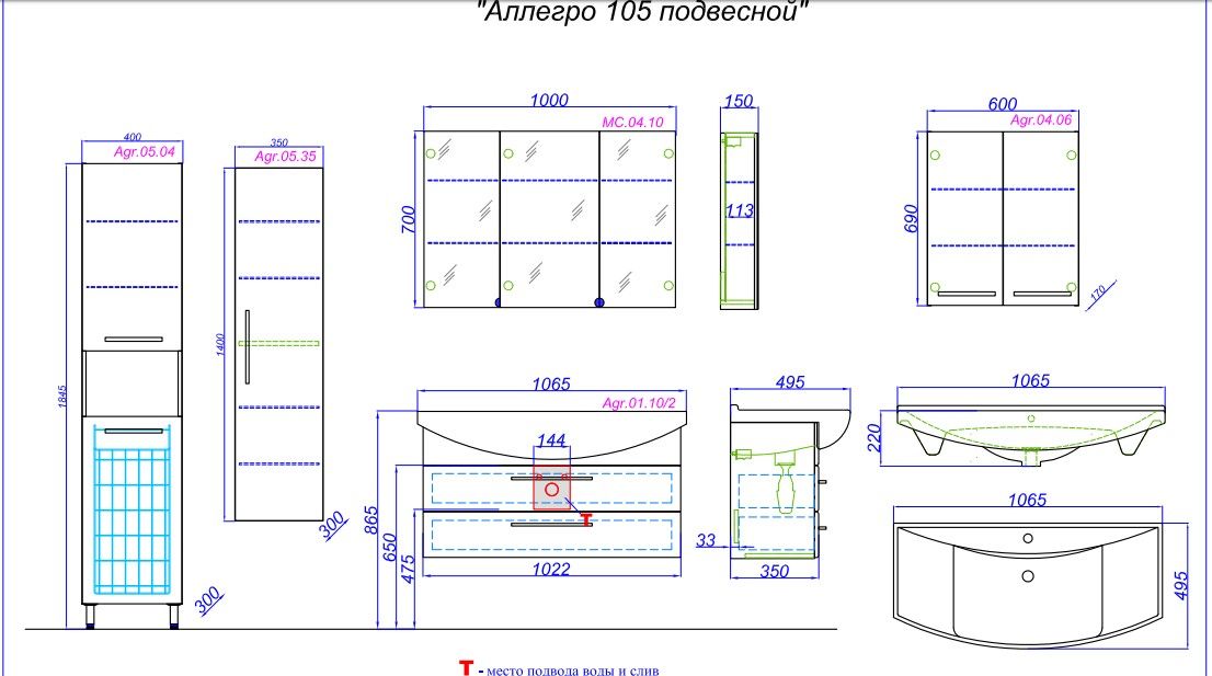 Тумба под раковину Aqwella Аллегро 105 Agr.01.10/2