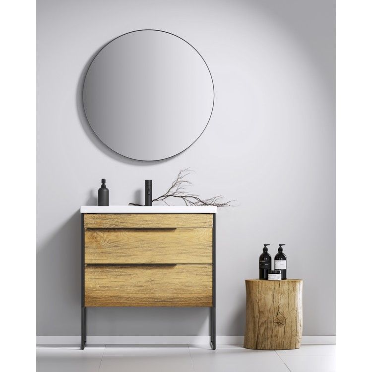 Тумба под раковину Aqwella Fargo FRG0108DB+FRGN440 80 смНапольная тумба в цвете дуб балтийский с двумя ящиками с умывальником