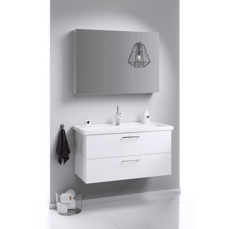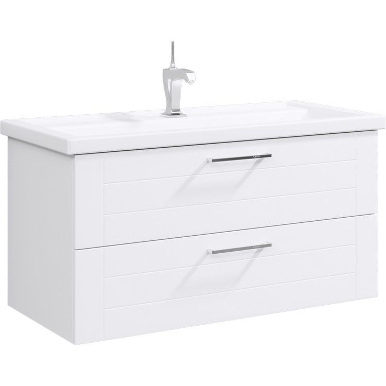 Тумба под раковину Aqwella Manchester MAN01102 100 смПодвесная тумба в белом глянцевом цвете с двумя ящиками с умывальником