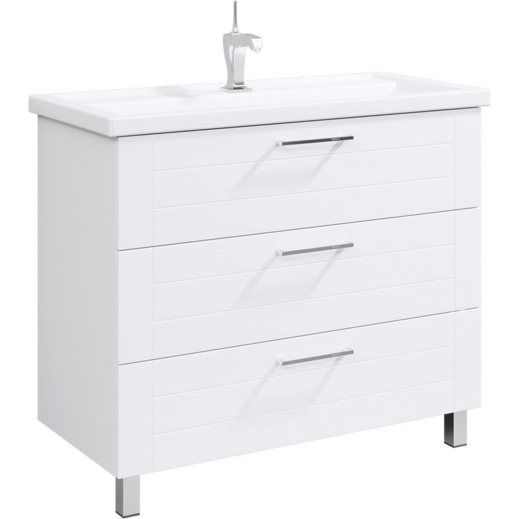 Тумба под раковину Aqwella Manchester MAN01103 100 смНапольная тумба в белом глянцевом цвете с тремя ящиками с умывальником