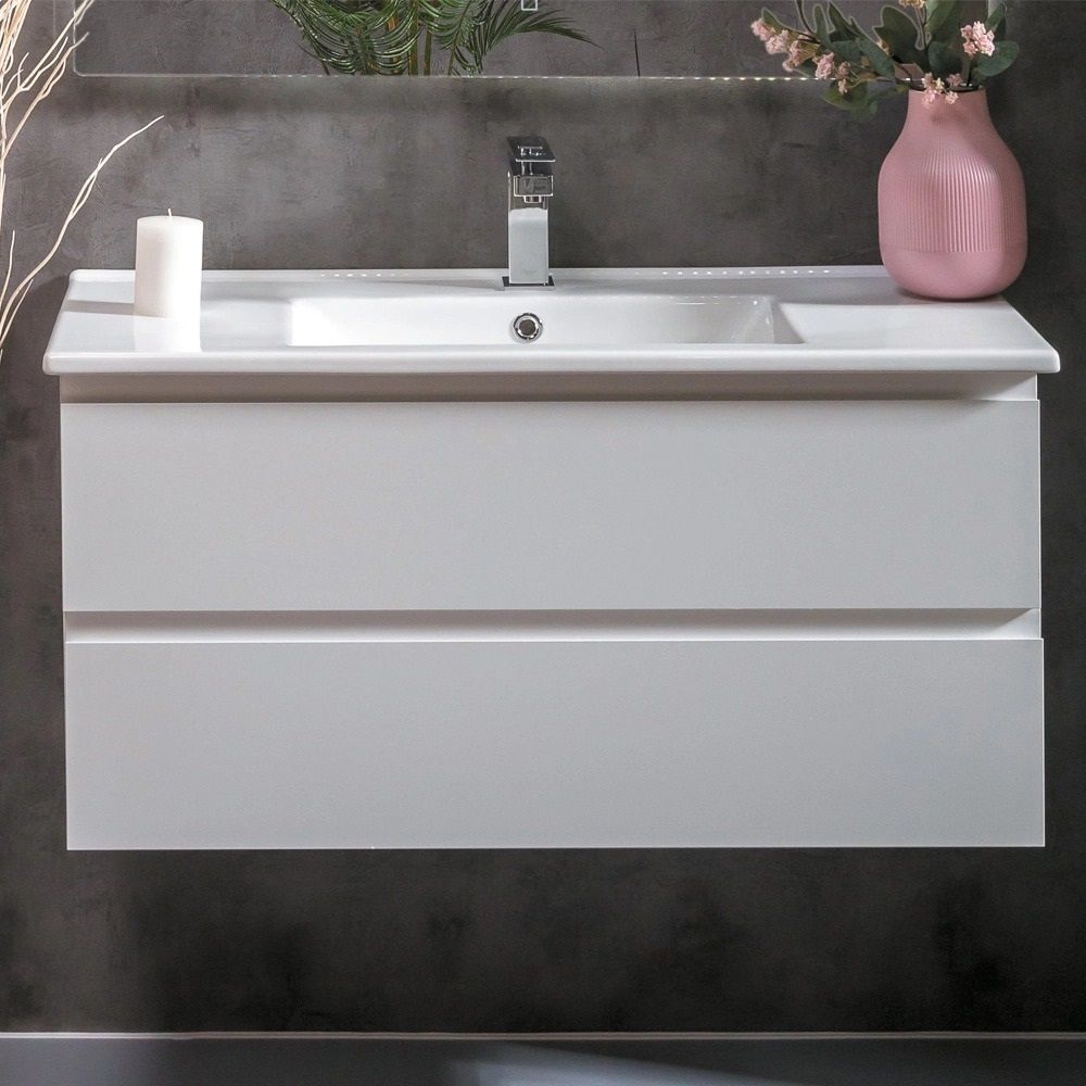 Тумба под раковину Armadi Art Capolda 100см белый + белая ручка 849-100-W